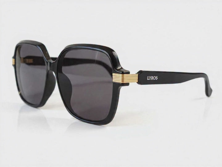 Les Lyros Noir Élite incarnent la sophistication moderne. Avec leur forme carrée oversize et leurs détails dorés sur les branches, elles offrent une allure à la fois imposante et raffinée. Leur design épuré et leur finition haut de gamme en font un choix incontournable pour ceux qui veulent affirmer leur style avec assurance.